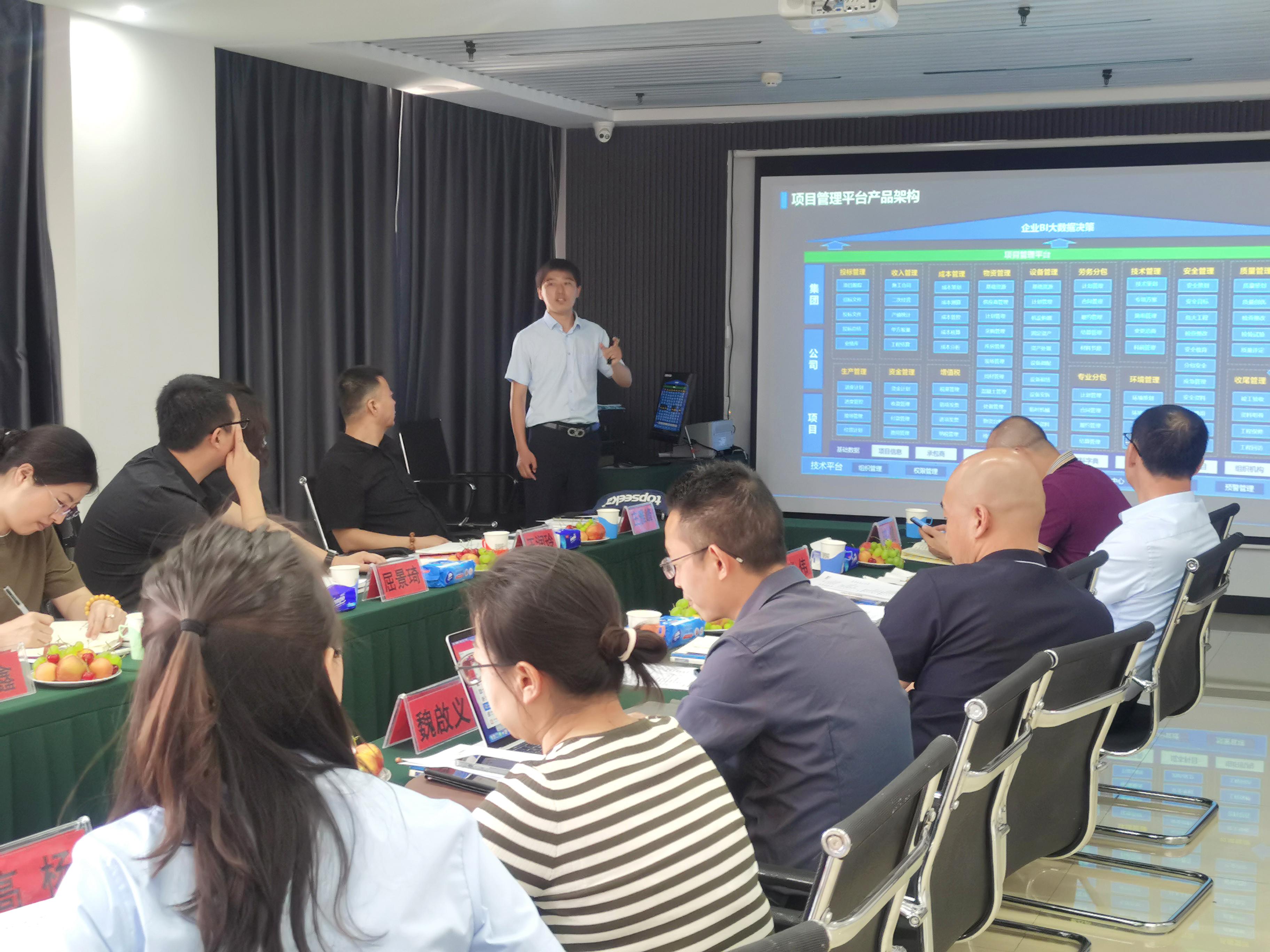 隨后在和利集團董事長楊金光、和利集團黨支部書記、副總經理張偉、和利集團副總經理馬錄、內蒙古廣聯達和利軟件有限公司總經理魏啟義、內蒙古和利信息技術有限公司研發部產品經理亢蕾、廣聯達施工BG、廣聯達造價BG的陪同下進行了企業信息化的建設交流。